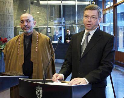 محترم حامد كرزي رييس دولت انتقالي افغانستان در معيت تعدادي از وزراي خود جهت شركت در دومين كانفرانس ((بن)) ديروز دوشنبه عازم آلمان شد